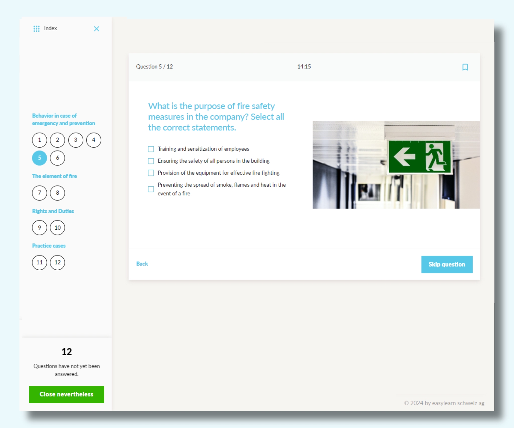 Einsatz von Assessments, um sicherzustellen und nachzuweisen, dass Mitarbeitende die relevanten Vorschriften und Richtlinien kennen. - Üben von Verhaltensweisen oder Informationen