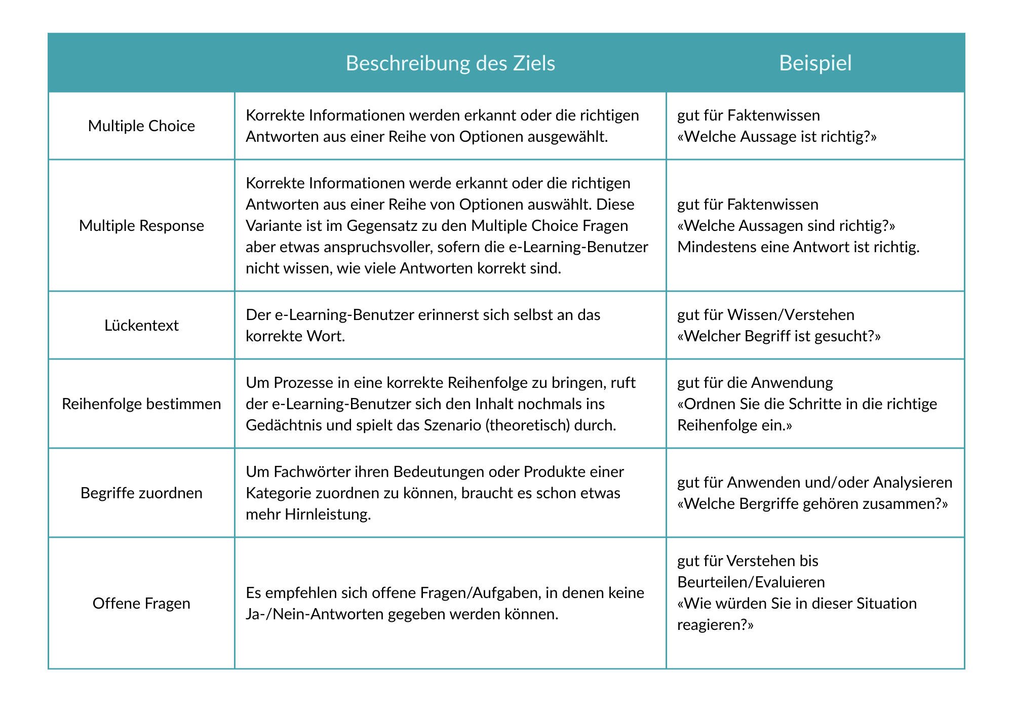 (z. B. 3–5 Fragen pro Abschnitt) - Wo und wann e-Learning Fragen eingesetzt werden