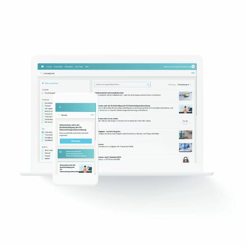 With e-learning, you can convey important knowledge easily and efficiently online: Roll out e-learning courses to your employees automatically via the easylearn learning platform and keep track of their progress at all times.